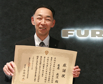 入社以来一貫して研究技術者として技術開発に専念し、特に超音波の技術研究を通して特許を取得しています。36年間、国内での技術開発の実践と指導を重ねて、当社の技術開発分野のトップとして、社内だけでなく舶用業界全体の発展に貢献してきたことが認められました。
