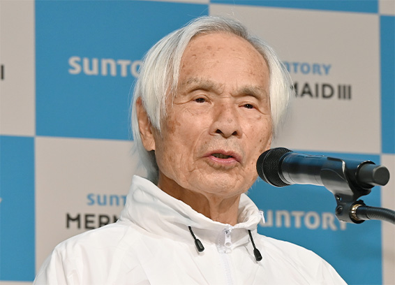 1962年当時を思い起こせば、創業者の⿃井信治郎から佐治敬三の代となり、ビール事業への参⼊を決め63年に販売を開始、「やってみなはれ」の精神で新事業に進出した時代でした。以降、サントリーは「やってみなはれ」という価値観を原動⼒に様々な事業を展開しています。堀江さんは、初めて単独太平洋横断を成功させてから60年経った今でも「挑戦」「やり抜く」という志を貫いており、まさに、創業者の⿃井信治郎が申すところの「やってみなはれ」の精神を体現するような挑戦をされていると思っております。