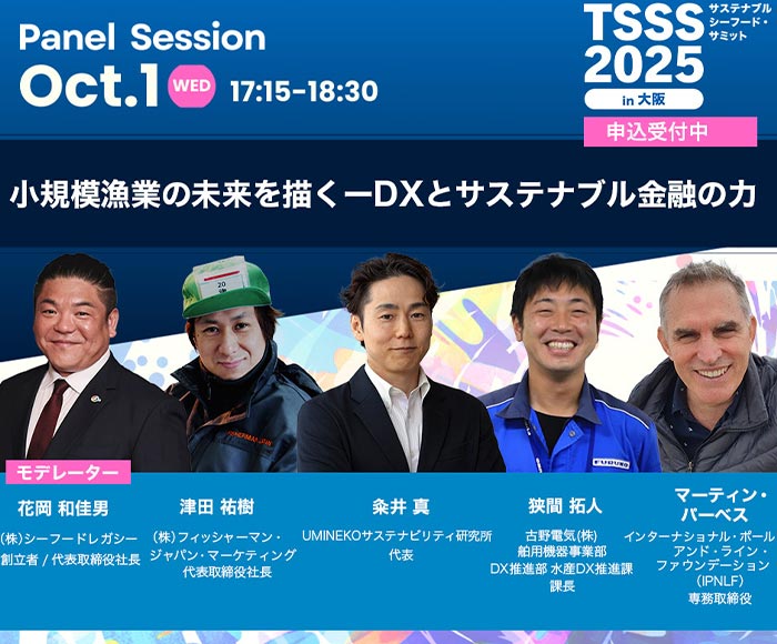 開催初日の10月1日(水)には、「小規模漁業の未来を描く-DXとサステナブル金融の力」をテーマに当社の社員がパネルセッションに登壇します。