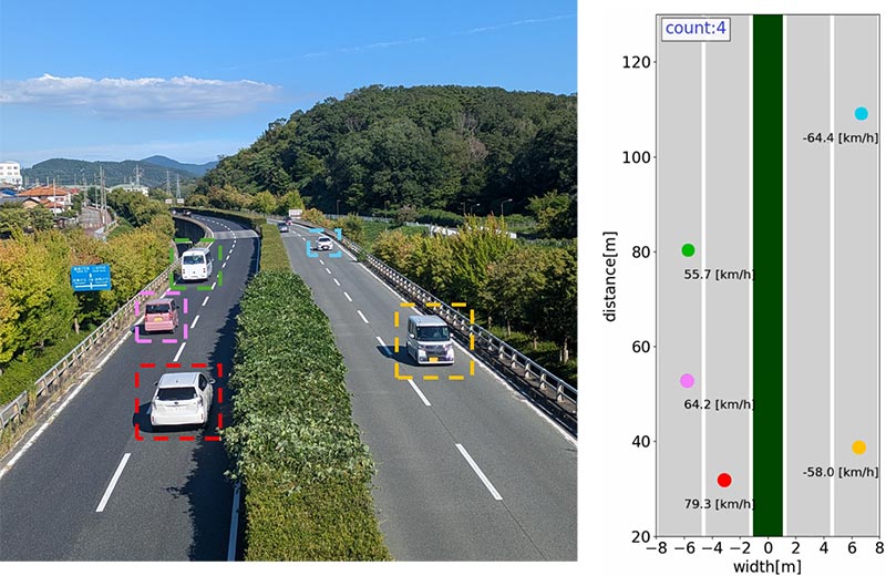 カメラ撮影した映像に、ミリ波レーダーで検出した車両を処理して表示