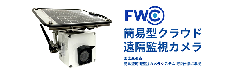 FWCは、国土交通省の簡易型河川監視カメラ仕様に準拠した、夜間撮影可能なソーラー&バッテリ一体型の遠隔監視カメラです。