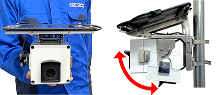 カメラ画角を上下・左右方向に調整でき、ソーラーパネルの角度調整も行えるため、即日設置・運用が可能